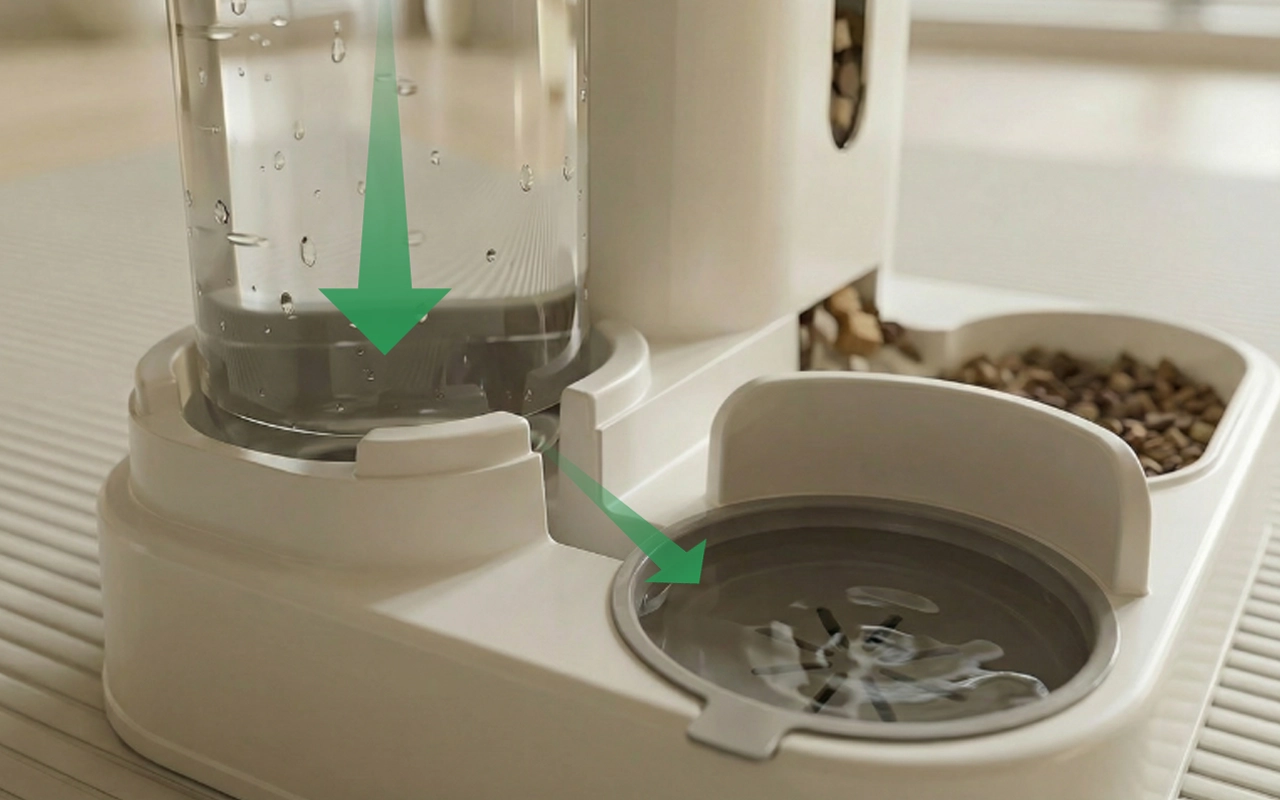 Il sistema automatico riempie la ciotola senza traboccamenti. Gli animali godono di acqua pulita anche quando non sei a casa.