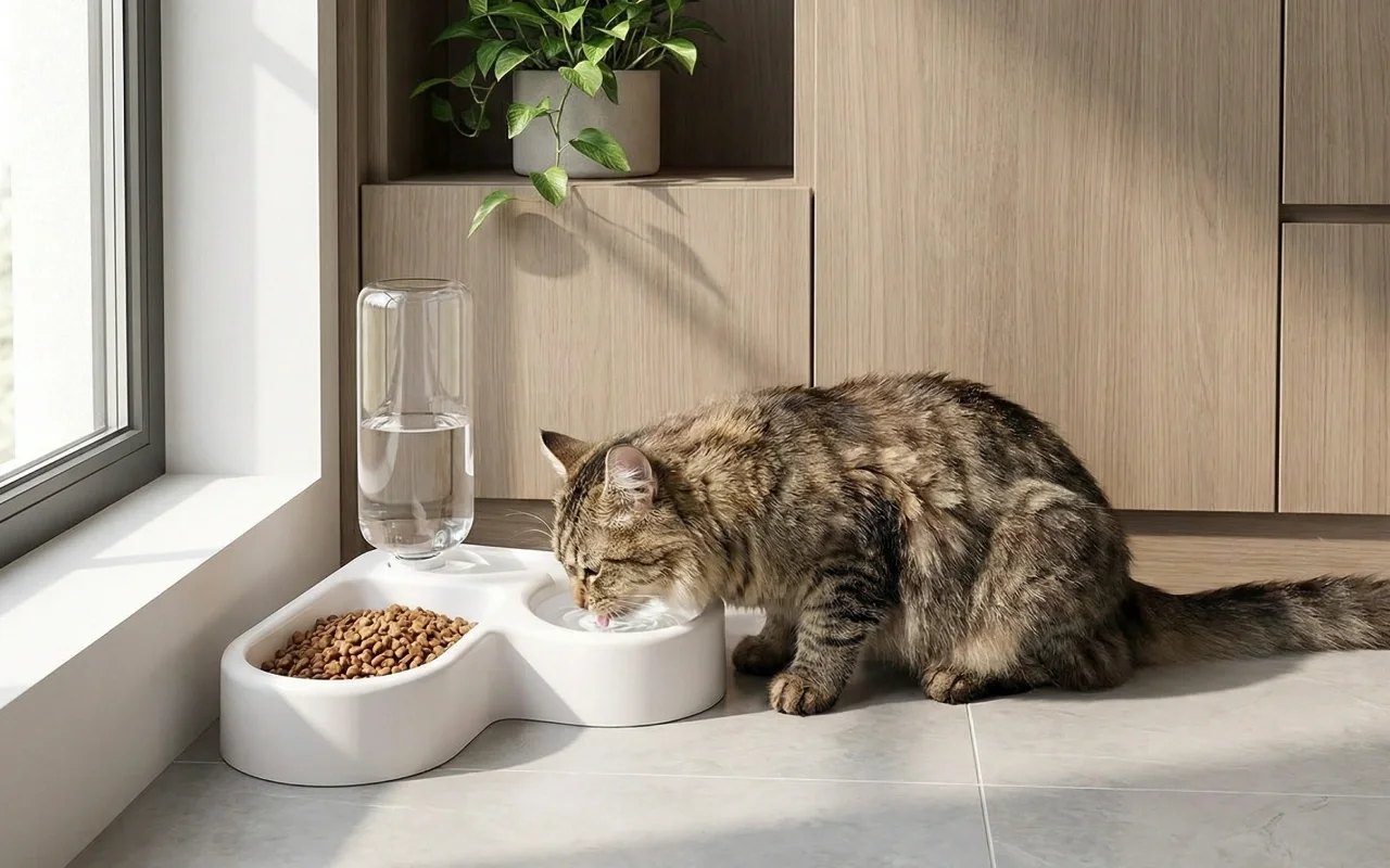 Nessun disordine, acqua sempre piena, gatto felice.