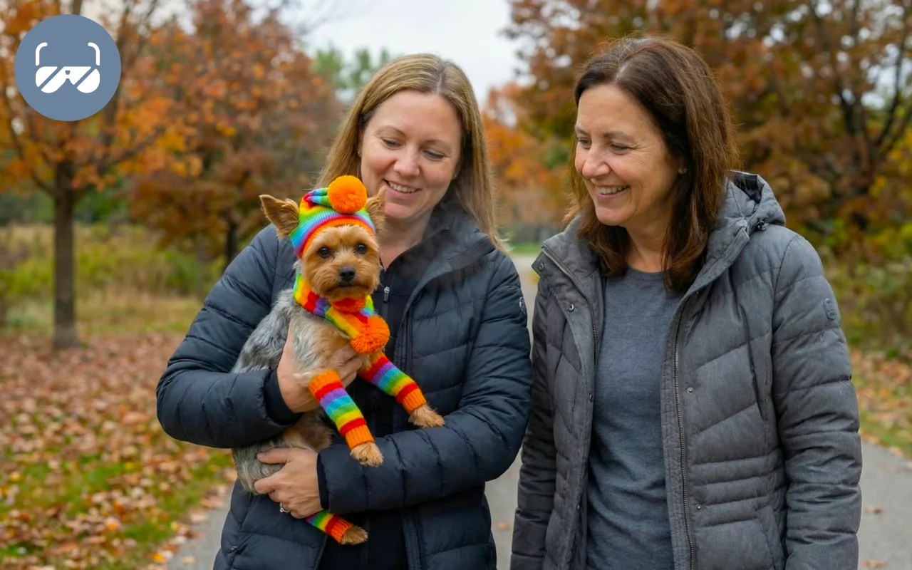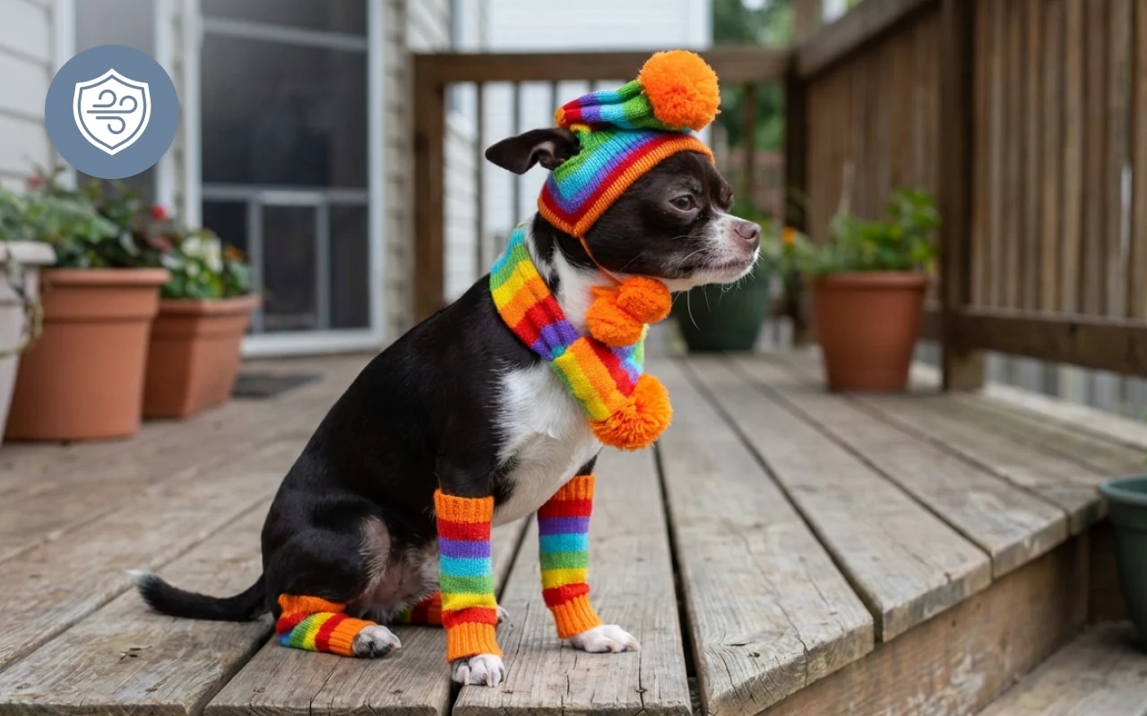 Ho comprato la versione a righe per Bella ed è adorabile! Copre le orecchie, il collo e persino le zampe. Niente più zampine fredde o umori scontrosi.