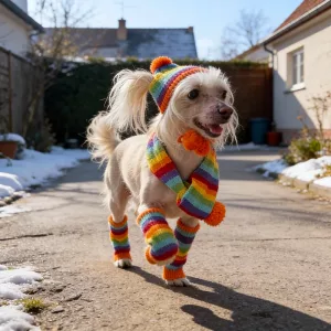 Strisce colorate e pompon portano allegria ovunque vai. Amici e parenti ameranno vedere il tuo animale vestito.