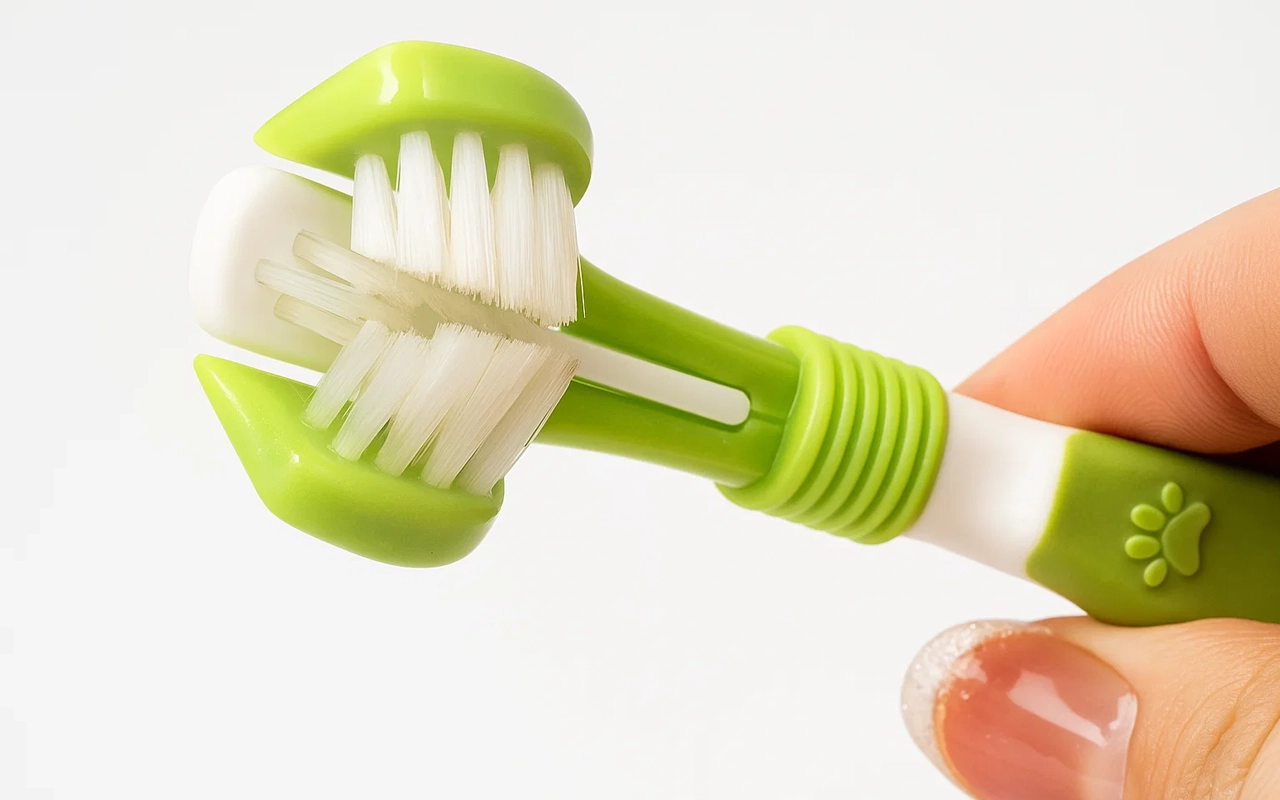 Lo spazzolino a tre lati rende la pulizia dei denti veloce. Risparmio tempo ogni giorno e il mio cane ora non vede l’ora di farsi spazzolare la sera.