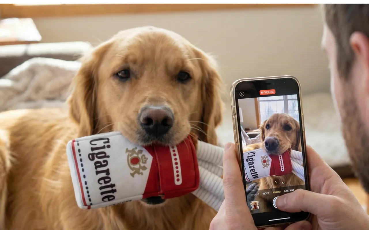Ho comprato il set di sigarette come scherzo per il cane del mio ragazzo, e ora finiamo entrambi sul pavimento a ridere mentre il cane mette in mostra la sua nuova scorta.