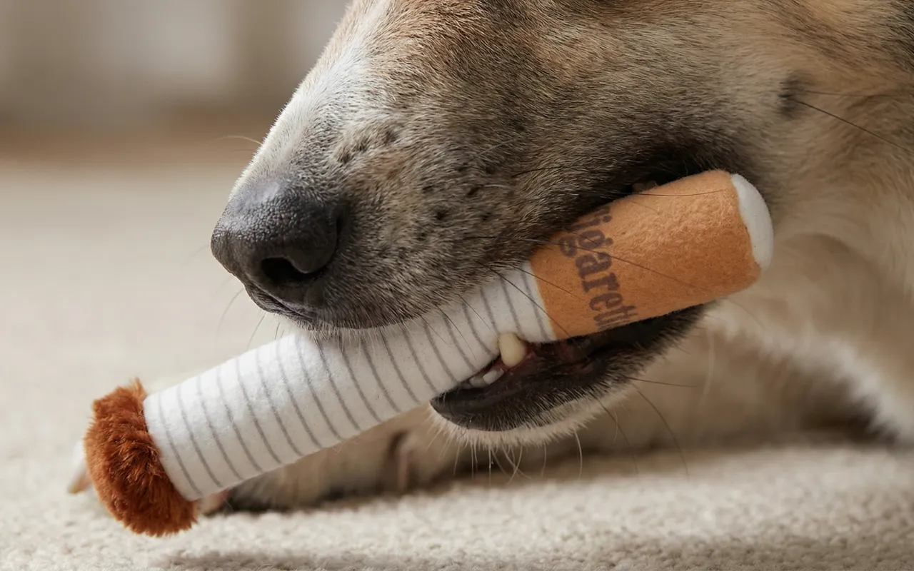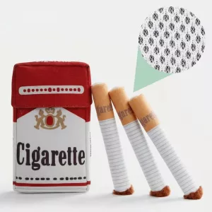 Ho preso il set di sigarette in pile per scherzo, ma il nostro cane le ha prese sul serio e ora gioca a riporto, ci si coccola e ne porta una a letto ogni sera.