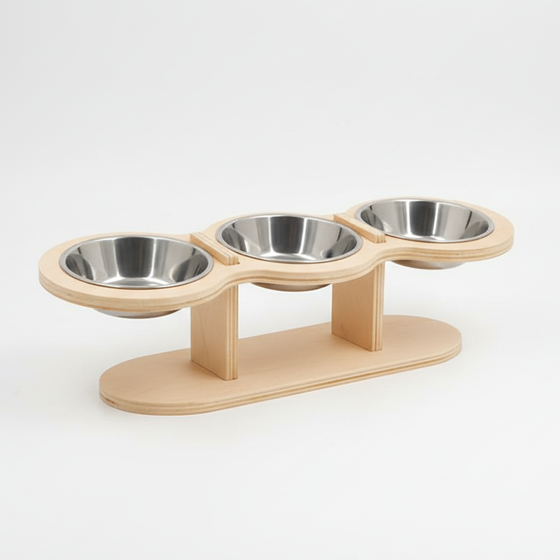 Le ciotole Primdog mantengono il cibo alla giusta inclinazione per facilitare l’alimentazione. L’acciaio inossidabile rende la pulizia veloce e semplice ogni giorno. Tre ciotole offrono varietà agli animali e meno disordine. Il supporto in legno mantiene tutto stabile e dona stile agli interni.