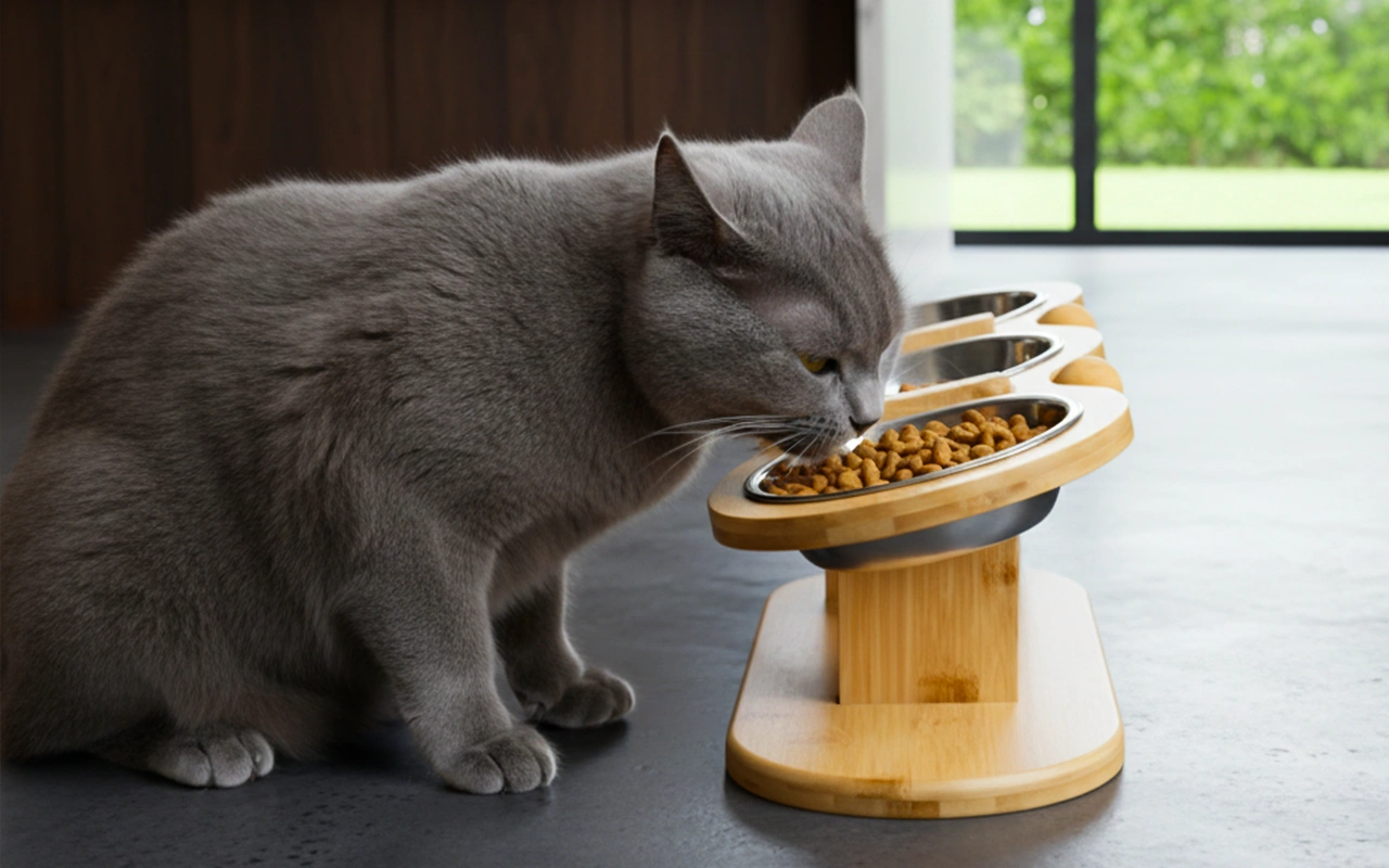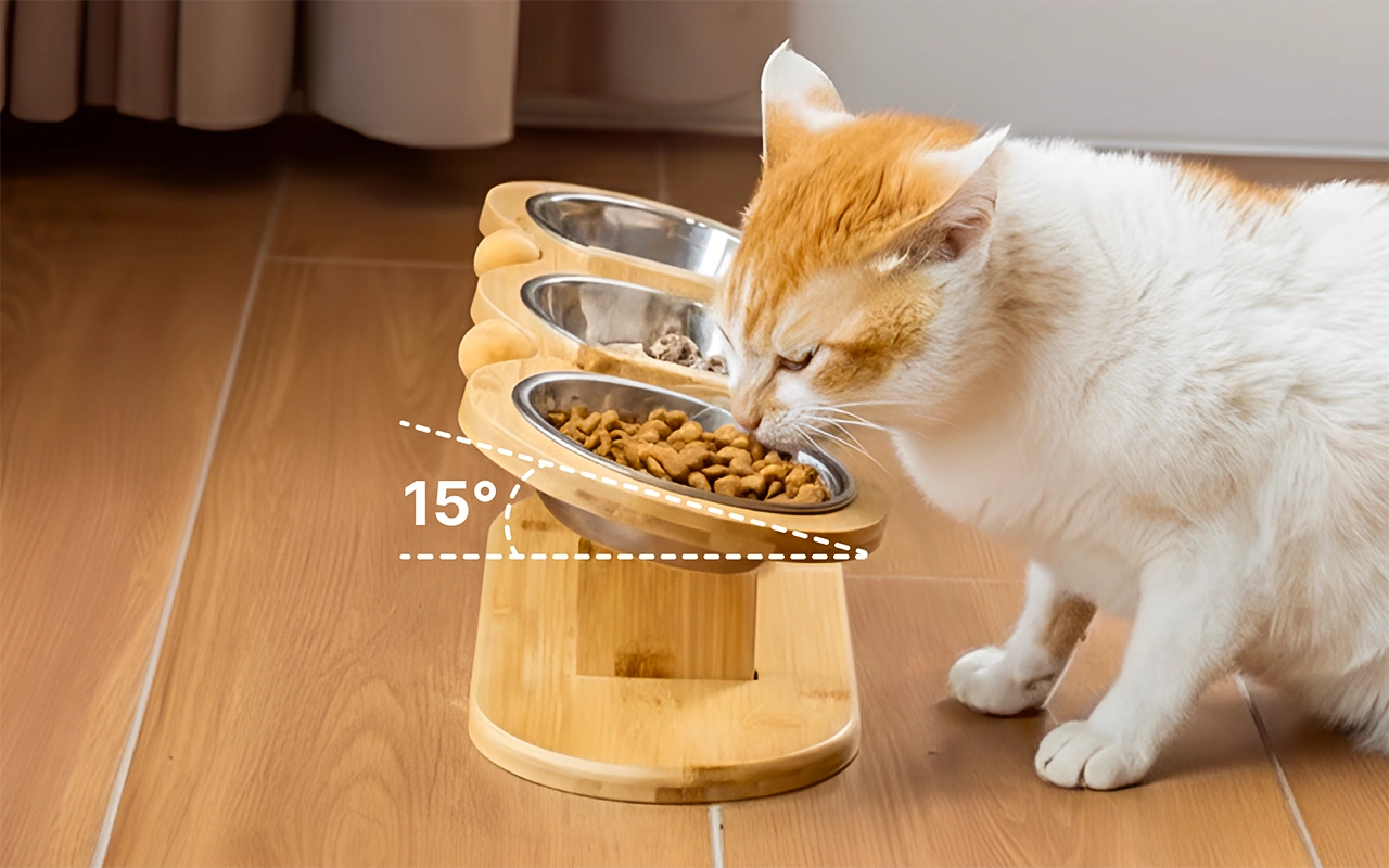 Mangiare con una leggera inclinazione aiuta i gatti a deglutire facilmente e comodamente. Questo riduce il rischio di soffocamento, gonfiore e aiuta il corpo ad assorbire i nutrienti.