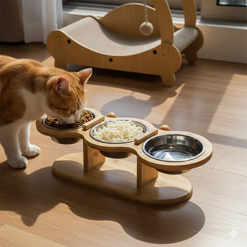 Il supporto in legno rende il momento del pasto elegante. Ha aiutato il nostro vecchio gatto a mangiare più lentamente e a digerire meglio. Ora la cucina è più pulita.