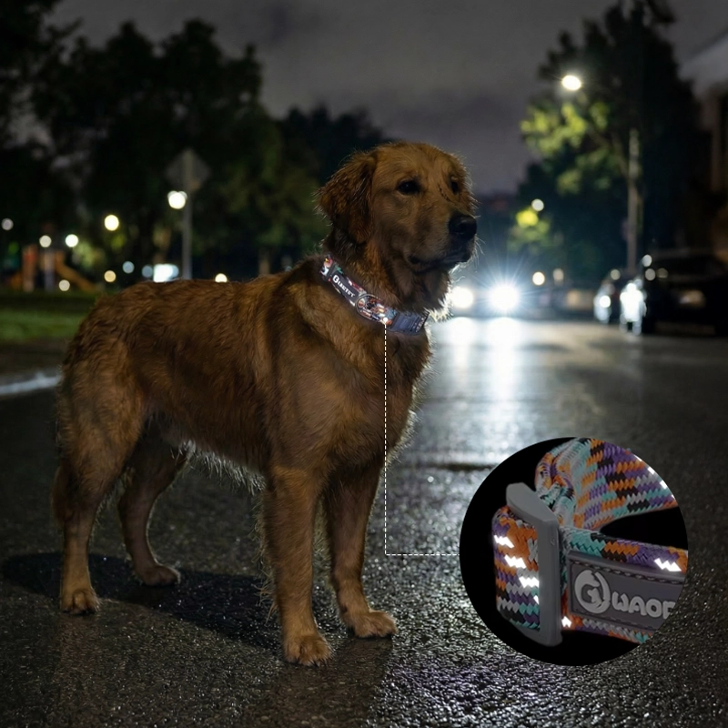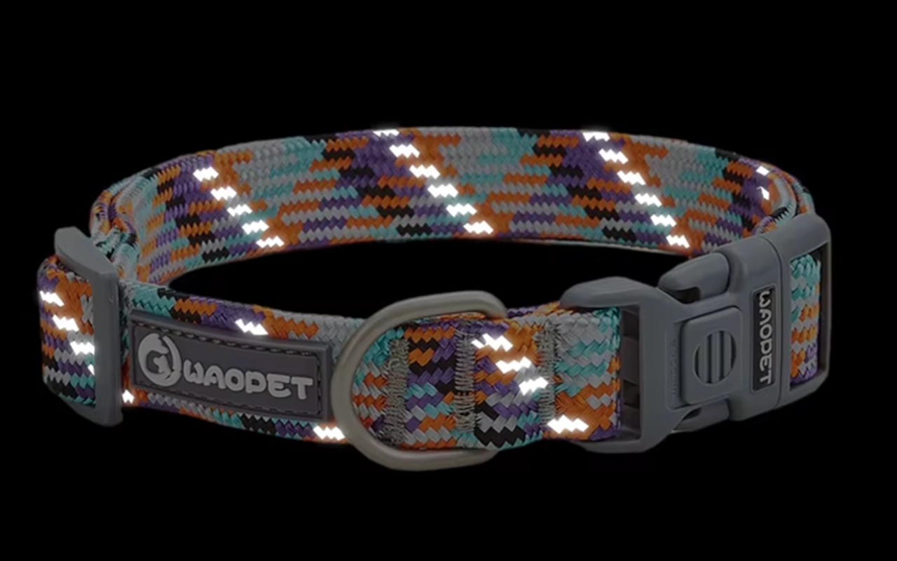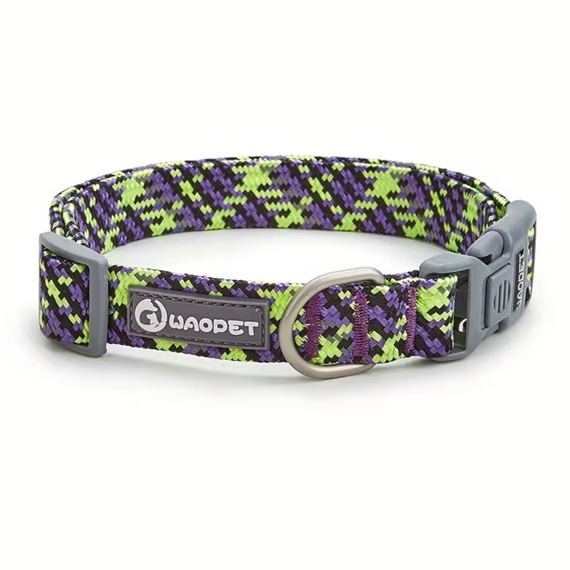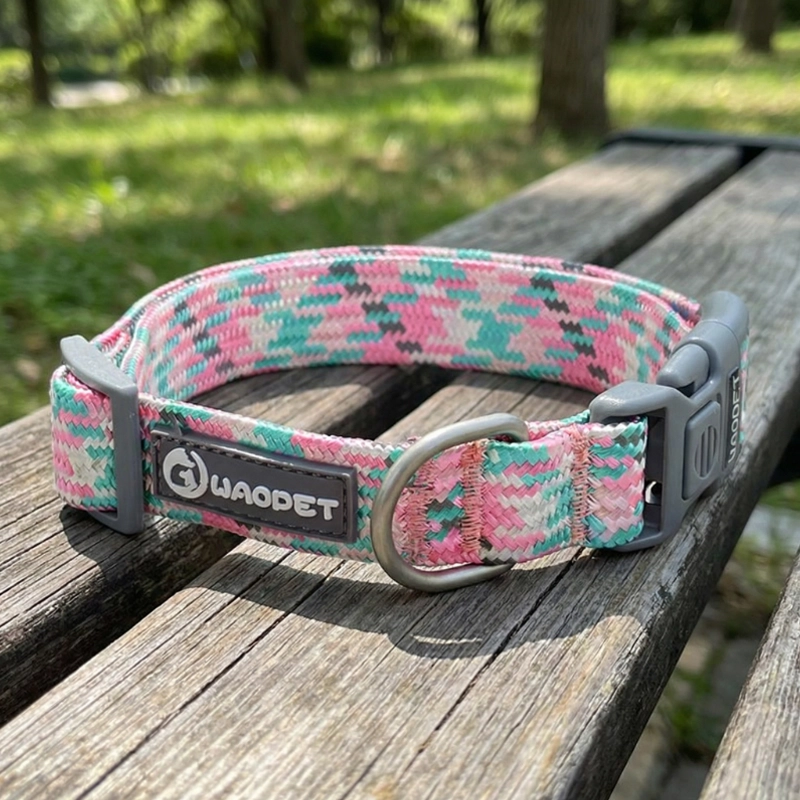 Collare regolabile riflettente in nylon intrecciato per cani