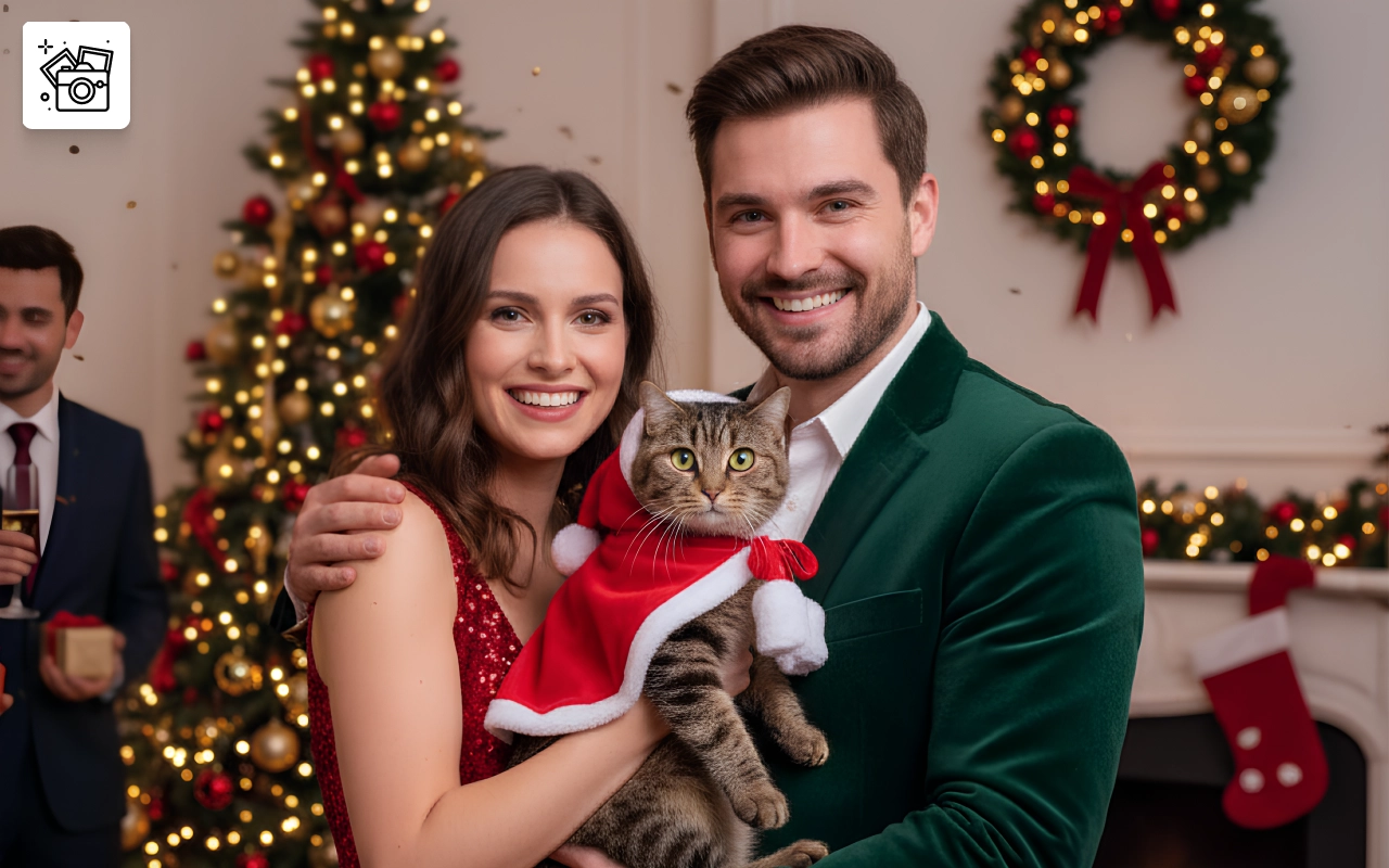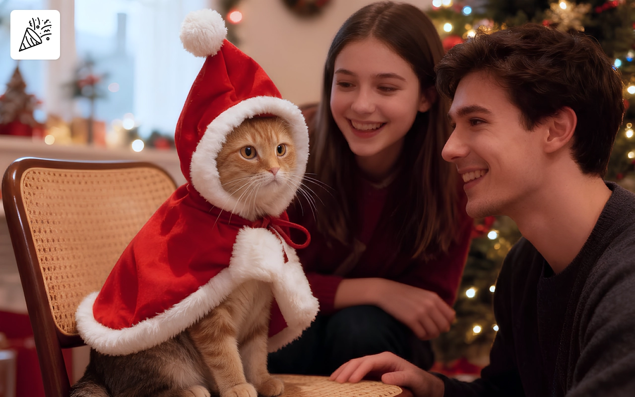 Tutti in famiglia volevano un selfie con la nostra gatta col mantello. Nessuna reazione allergica, solo una gatta felice! Abbiamo salvato tutte le foto per la prossima stagione.