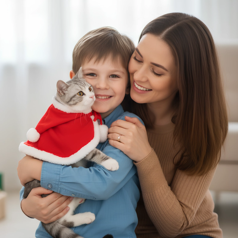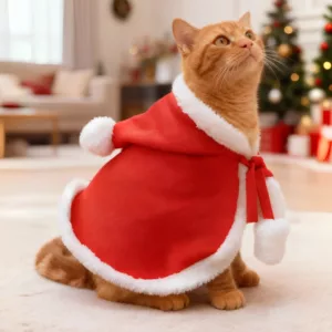 Costume di Natale per Gatto – Mantella con Cappuccio da Babbo Natale