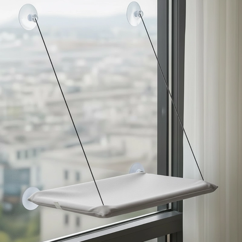 Il Primdog Cat Window Perch permette agli animali di rilassarsi in sicurezza sopra il pavimento. Le ventose si fissano rapidamente senza utilizzare attrezzi o hardware aggiuntivi. Il robusto telaio supporta fino a venti chilogrammi.