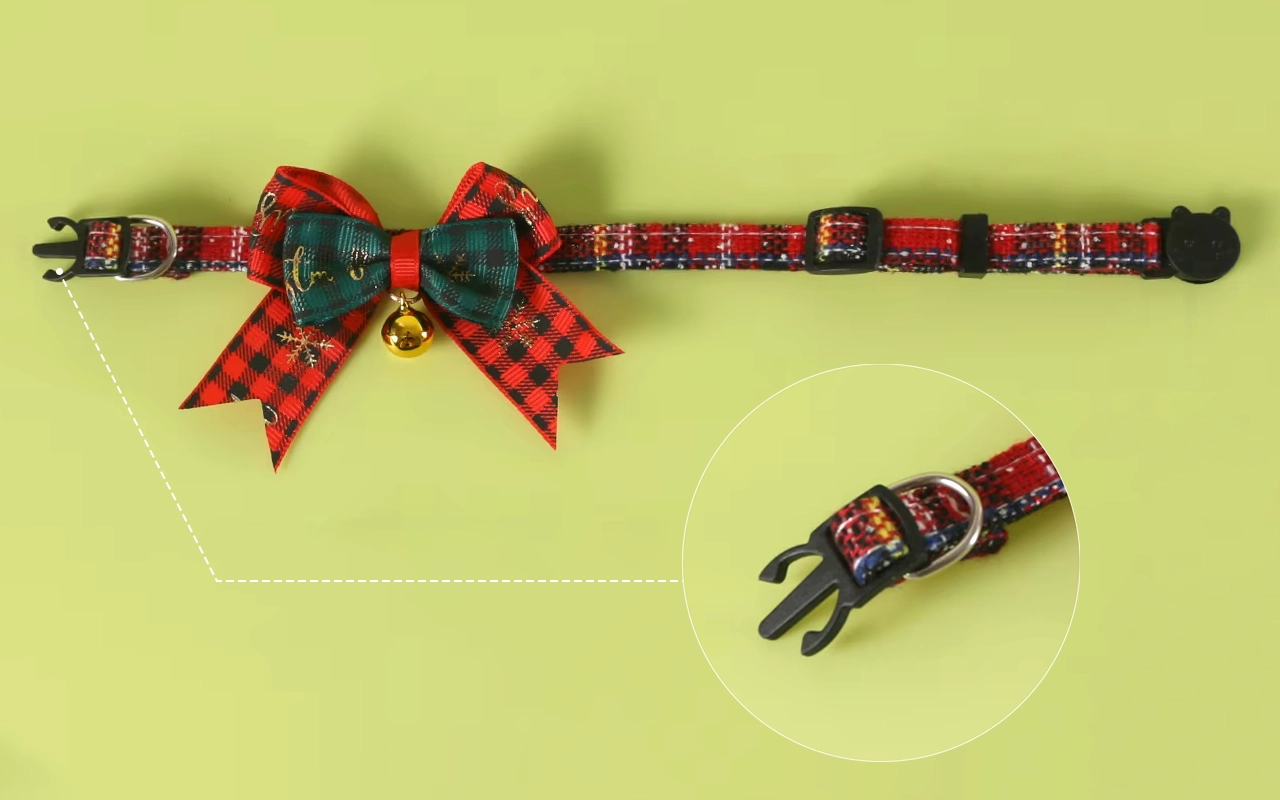 La chiusura è molto delicata e non dà fastidio alla nostra micia. Inoltre, i colori la fanno risaltare in tutte le nostre foto delle feste.