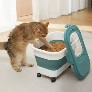Il cibo rimane croccante e asciutto, così gli animali si gustano ogni pasto. Il design sottile si inserisce perfettamente negli angoli stretti, mantenendo il tuo spazio in ordine in ogni momento. Si sposta facilmente grazie alle ruote scorrevoli sottostanti. Il coperchio trasparente ti permette di vedere i cereali senza sollevare il coperchio.