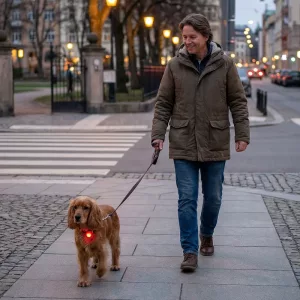 Viviamo vicino a strade trafficate e questo tag luminoso aiuta le auto a vedere il mio cane facilmente. Lui neanche si accorge che c’è e resta visibile per tutta la passeggiata.