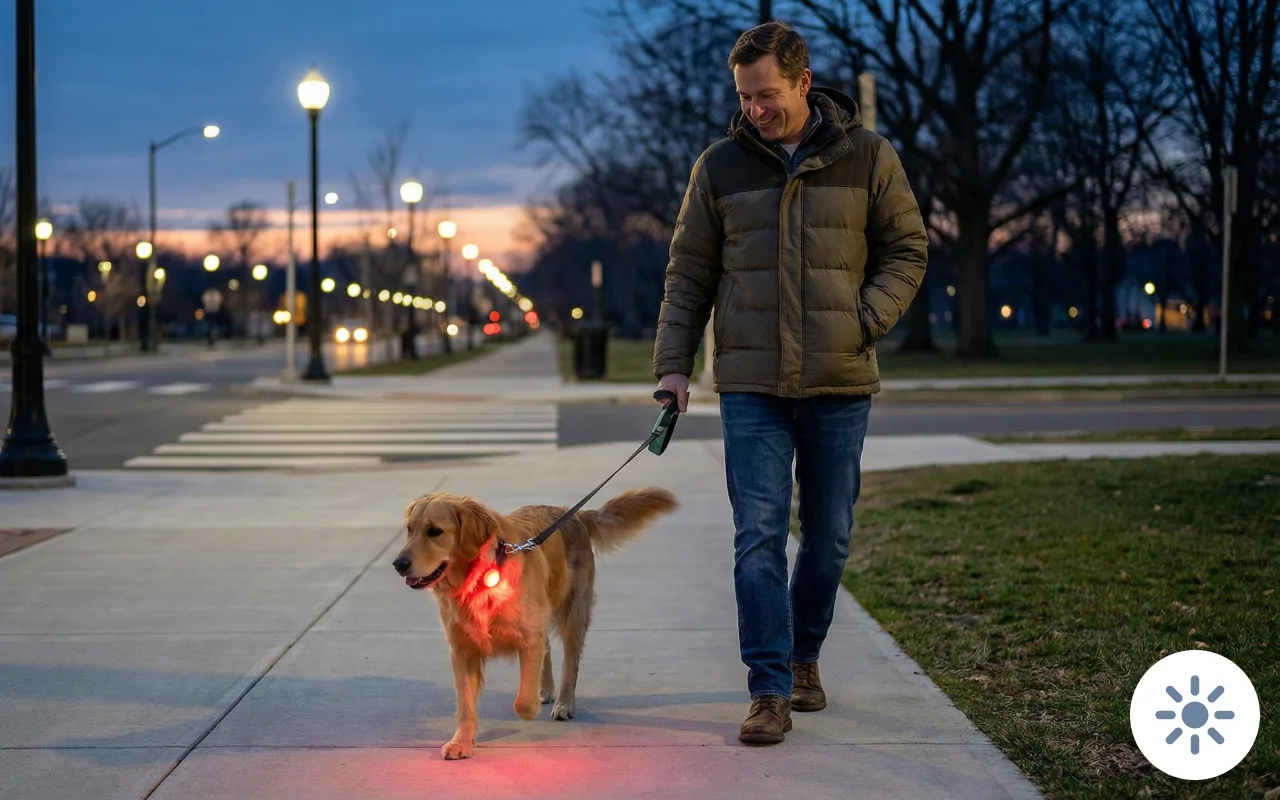 Ho portato il mio cucciolo al parco al tramonto e grazie a questo gadget è stato facilissimo individuarla tra gli altri cani. Si attacca velocemente e resta ben saldo.