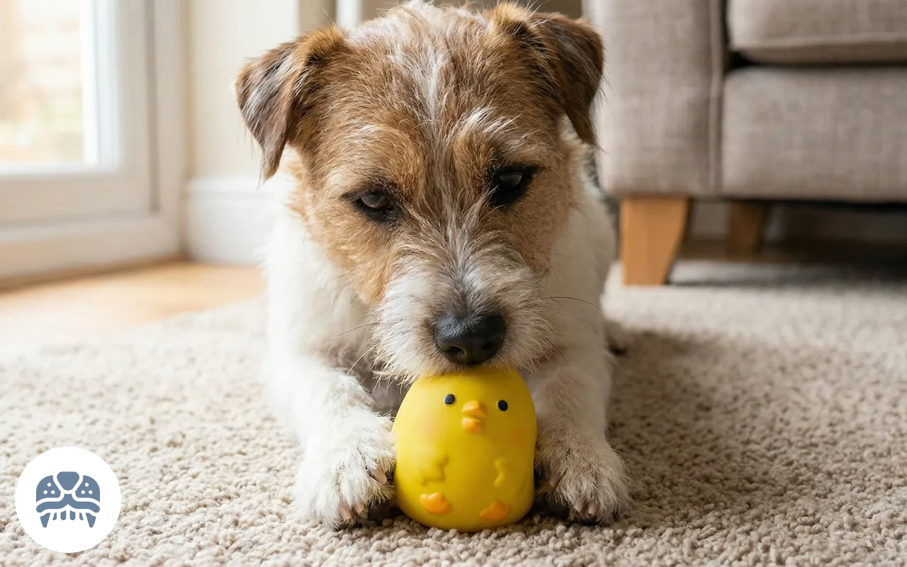 Il mio cane si diverte con lo squeaker. Squittii molto divertenti!