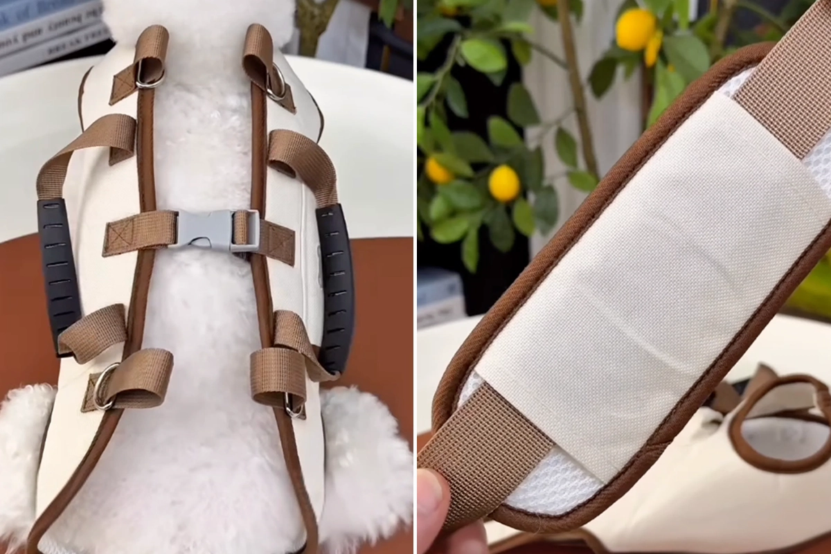 Il mio cane si rilassa subito quando la metto nell’imbracatura. C’è molta imbottitura morbida, così resta comoda in ogni viaggio che facciamo insieme.