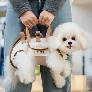 Mi piace che questa borsa sia leggera, è facile portare il mio cagnolino sugli autobus affollati. La cerniera e il guinzaglio lo tengono al sicuro all’interno.