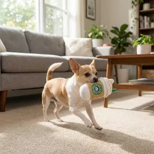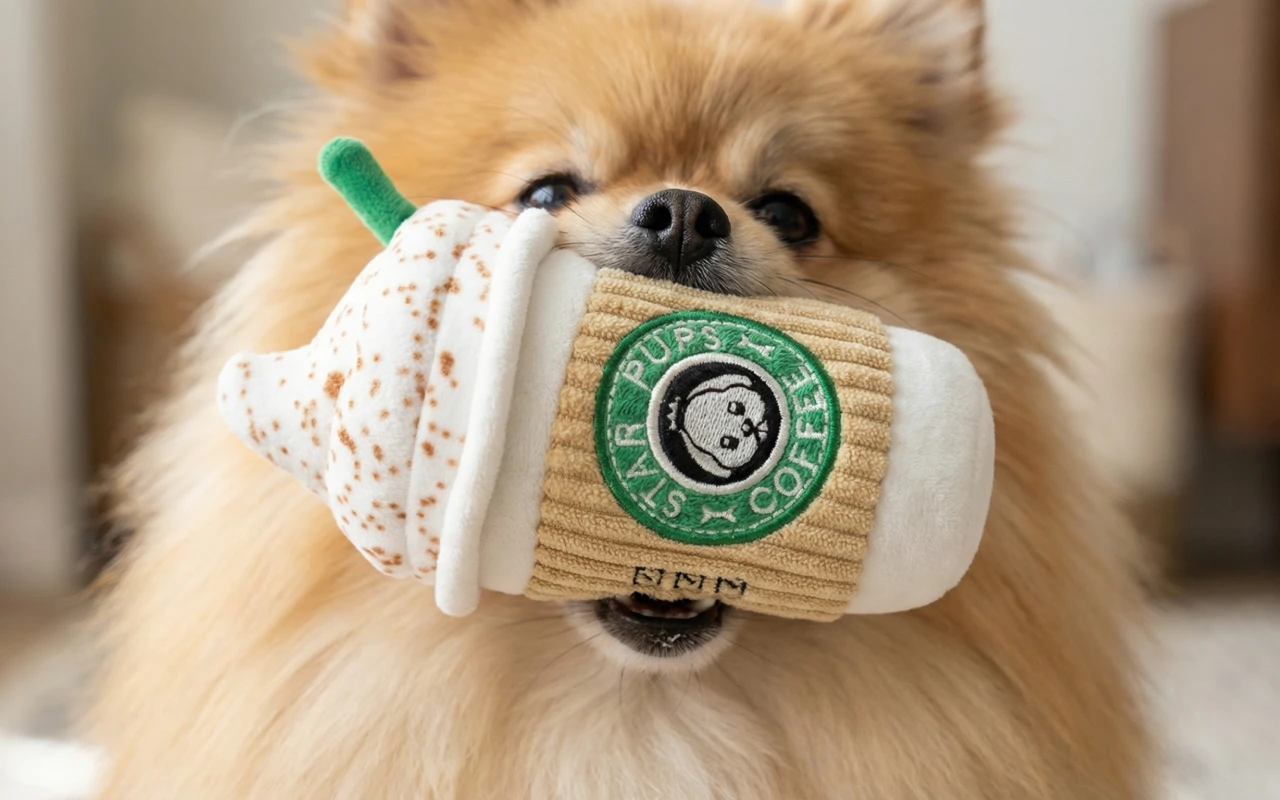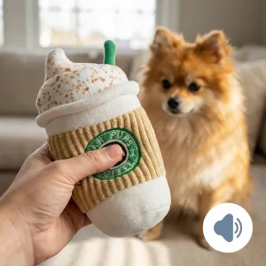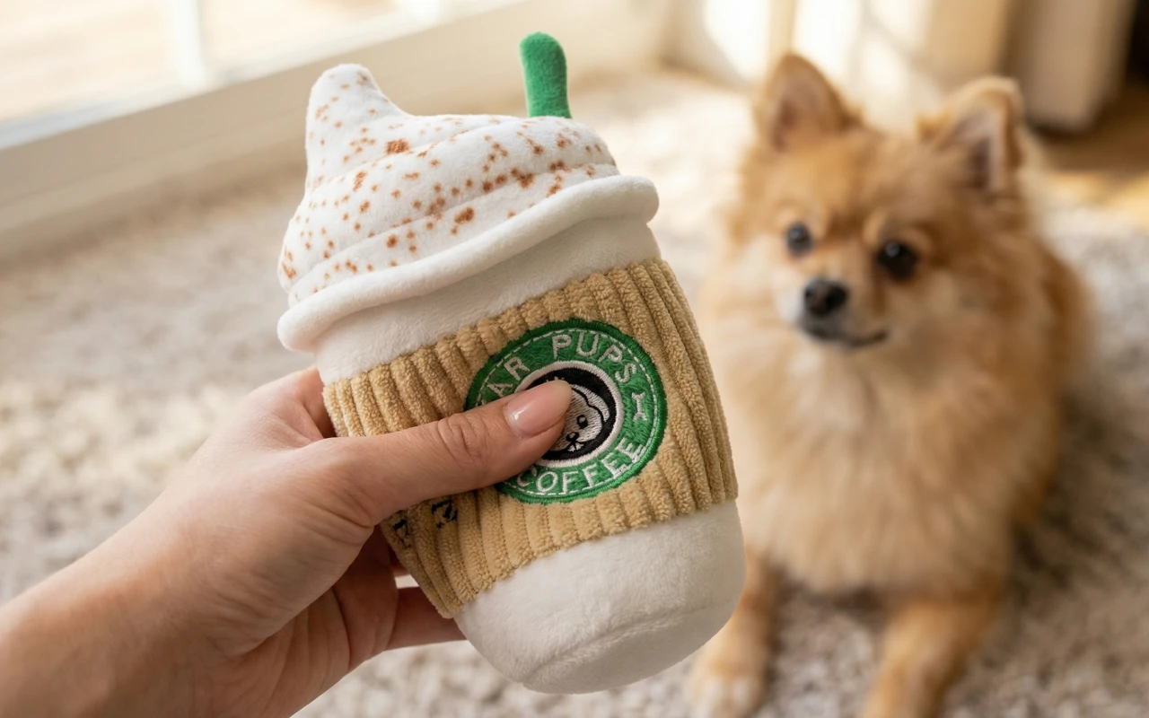 Giocattolo per cani a forma di tazza di caffè in morbido pile con squeak