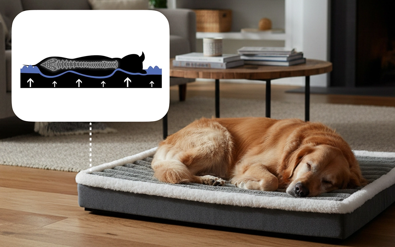 La schiuma a cassetta sostiene gli animali domestici e allevia il disagio dovuto alla pressione. Gli animali si muovono più facilmente e hanno meno rigidità al risveglio.