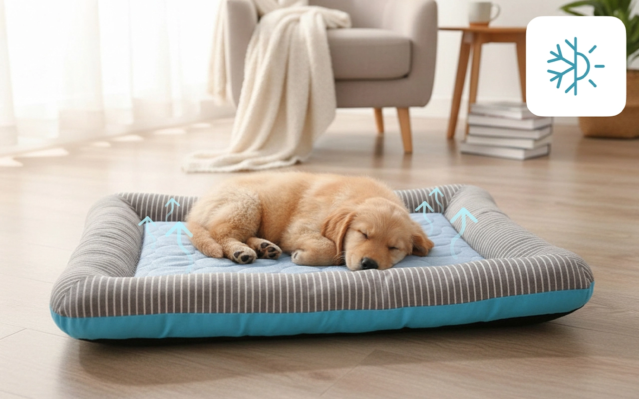 Il calore si dissipa dal luogo di riposo preferito del tuo animale. Materiali speciali favoriscono il flusso d'aria, aiutando a mantenere i corpi freschi e felici.