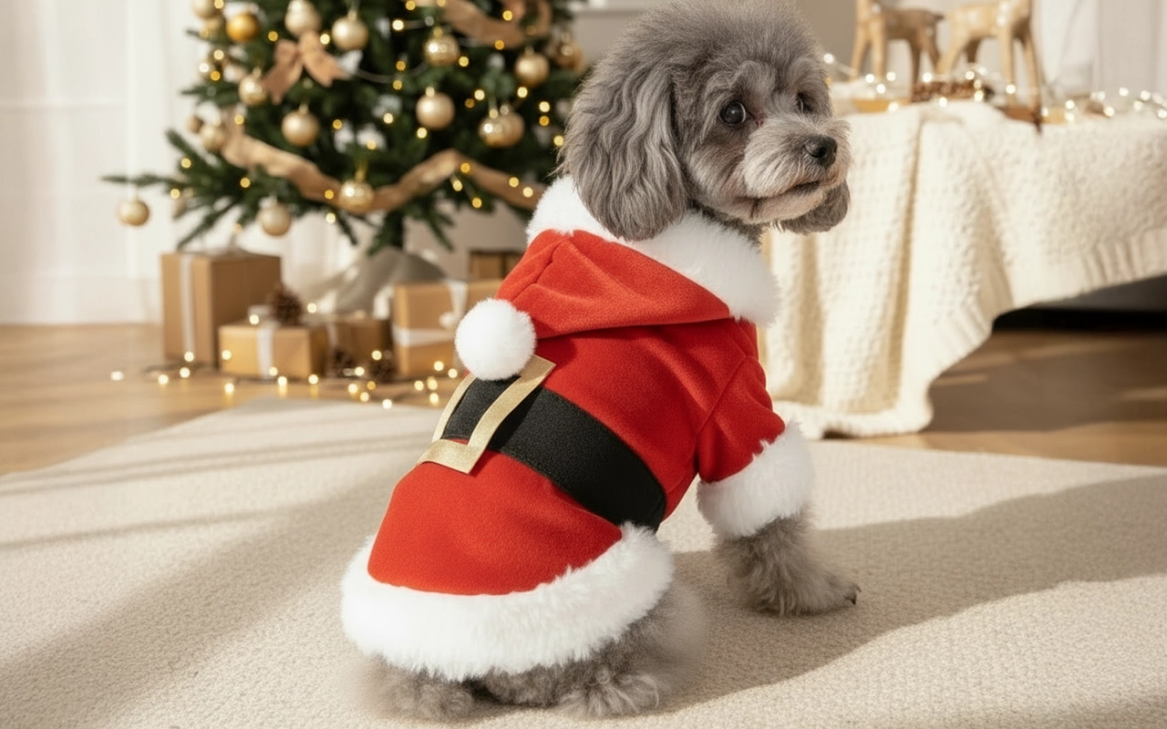 Cappotto per cane Babbo Natale con cappuccio Costume da Santa Claus