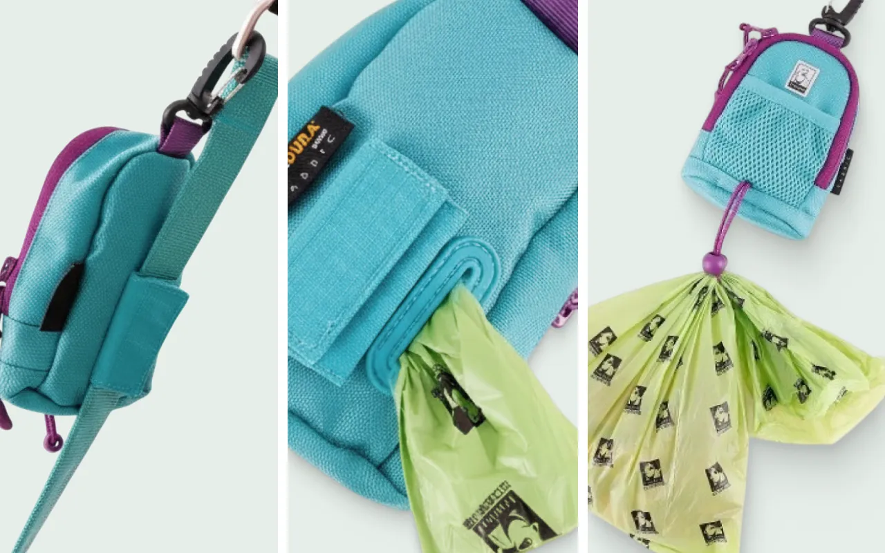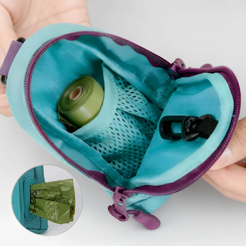 Portare con sé snack e sacchetti per i bisogni allo stesso tempo è fantastico. La piccola bustina contiene anche le chiavi così non serve più una borsa grande.