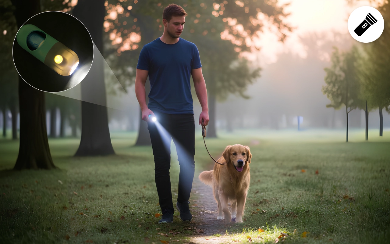Portare a spasso il mio cane di notte era difficile. Ora il LED illumina esattamente dove serve. I sacchetti spessi non fanno mai passare nulla.