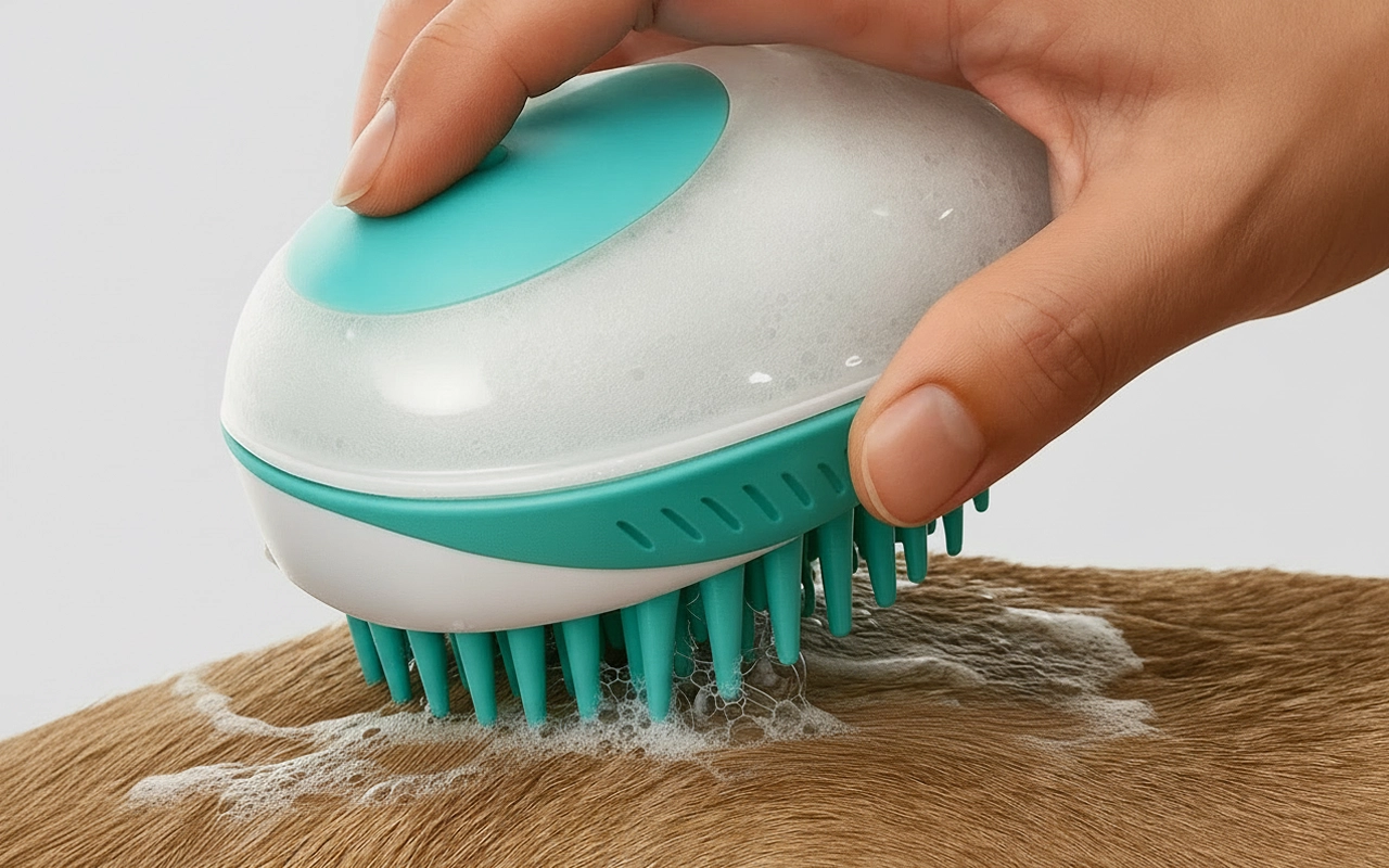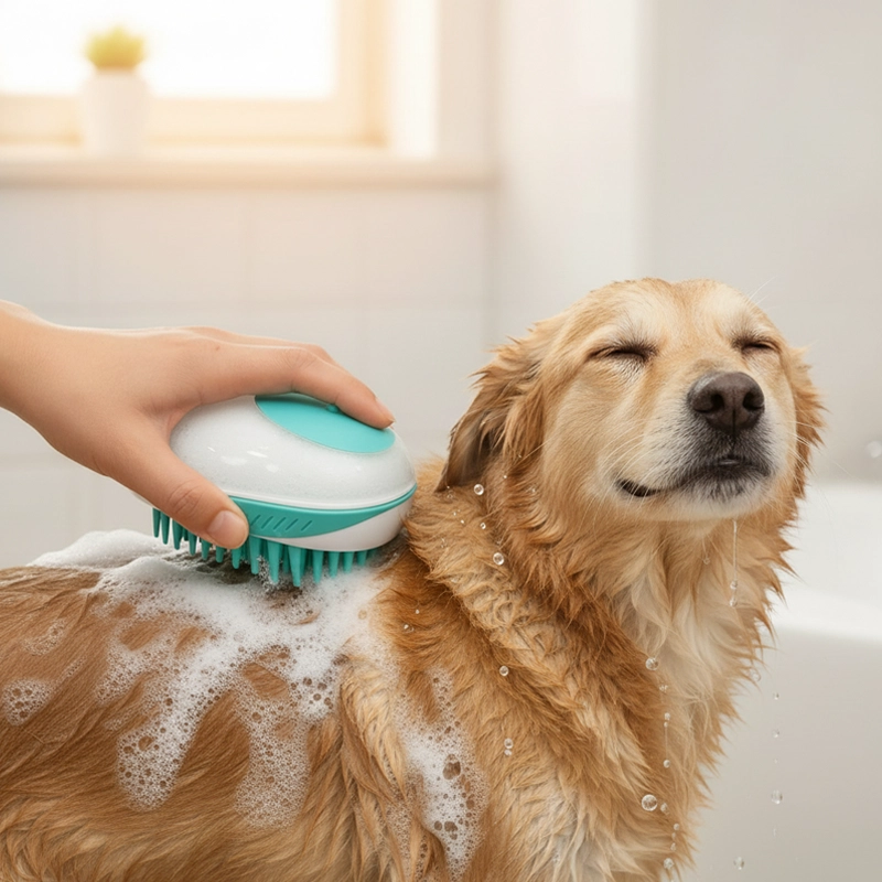 Spazzola da Bagno per Cani in Silicone con Dispenser di Shampoo