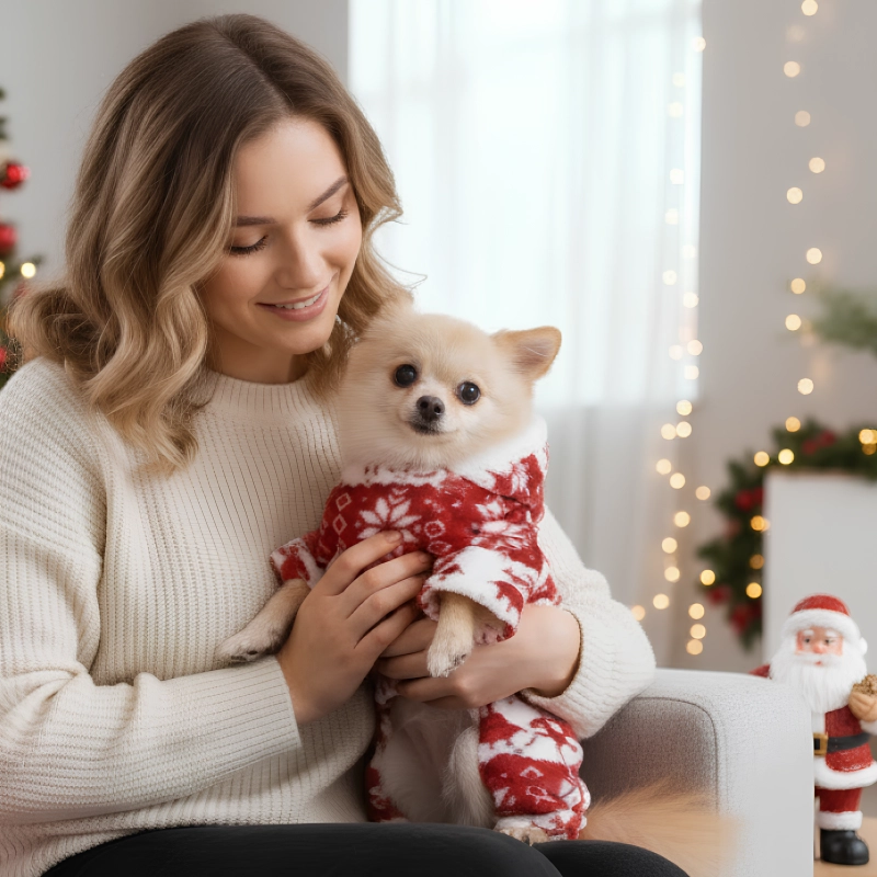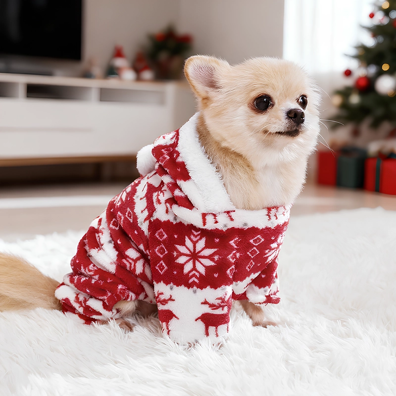 7 recensioni per Pigiama natalizio in pile caldo per cani con cappuccio