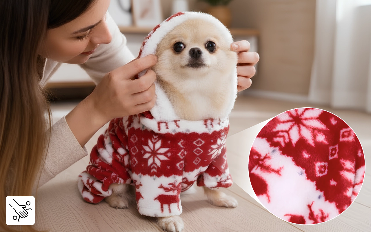 Le notti fredde possono far tremare i tuoi amici pelosi anche in casa. La tuta Primdog avvolge gli animali in un comfort morbido e delicato, offrendo sollievo immediato. Il caldo pile blocca le correnti fredde e mantiene al caldo i piccoli corpi. I motivi festivi portano ancora più felicità in ogni ricordo delle feste.
