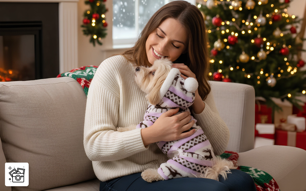 Il design natalizio allegro aggiunge gioia a ogni incontro. Scatta foto festive perfette con il tuo animale vestito per la festa.