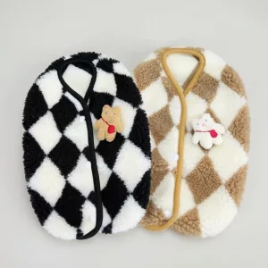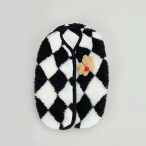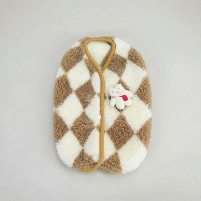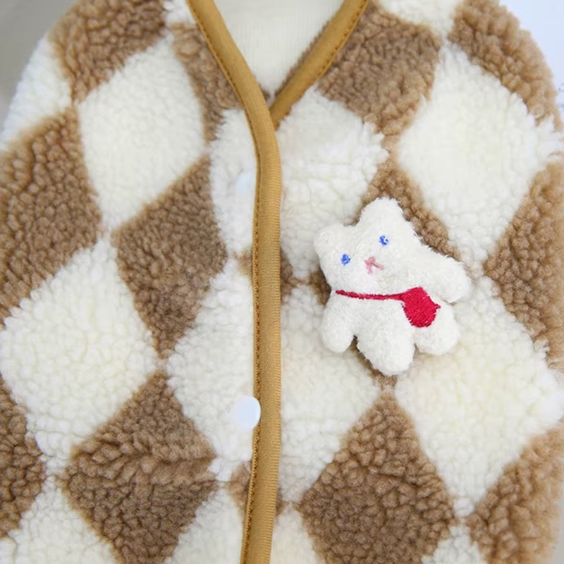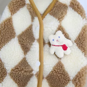 dog soft plaid jacket, dog soft jacket, dog jacket with snap buttons, dog winter vest