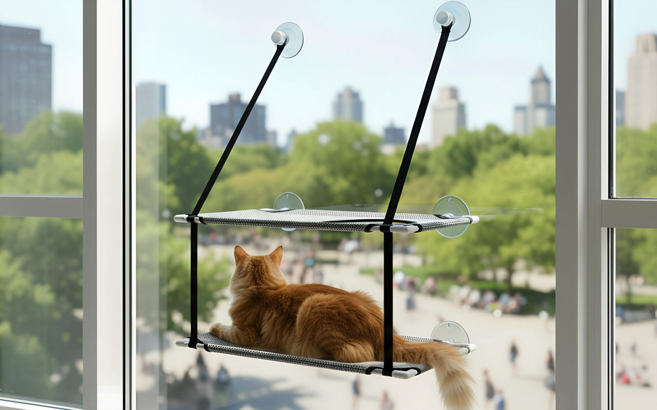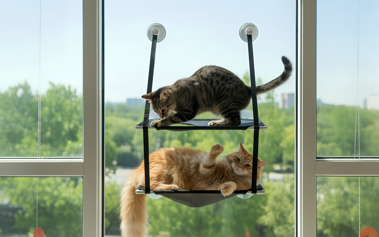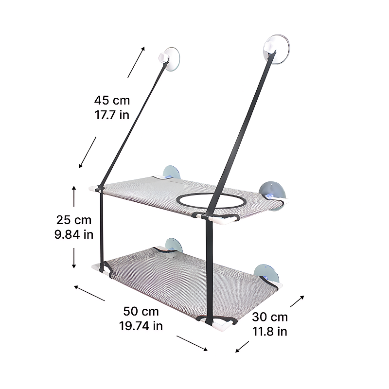 Ogni felino può godersi aria fresca e splendidi panorami ogni giorno. L’amaca doppia Primdog mantiene gli animali sicuri e felici in casa. Le ventose forti la fissano facilmente su qualsiasi finestra. I componenti leggeri permettono un montaggio rapido senza bisogno di attrezzi.