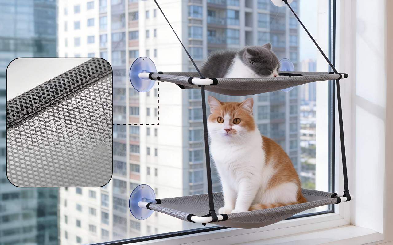 Amaca per Gatti a Due Piani da Finestra Letto Sospeso