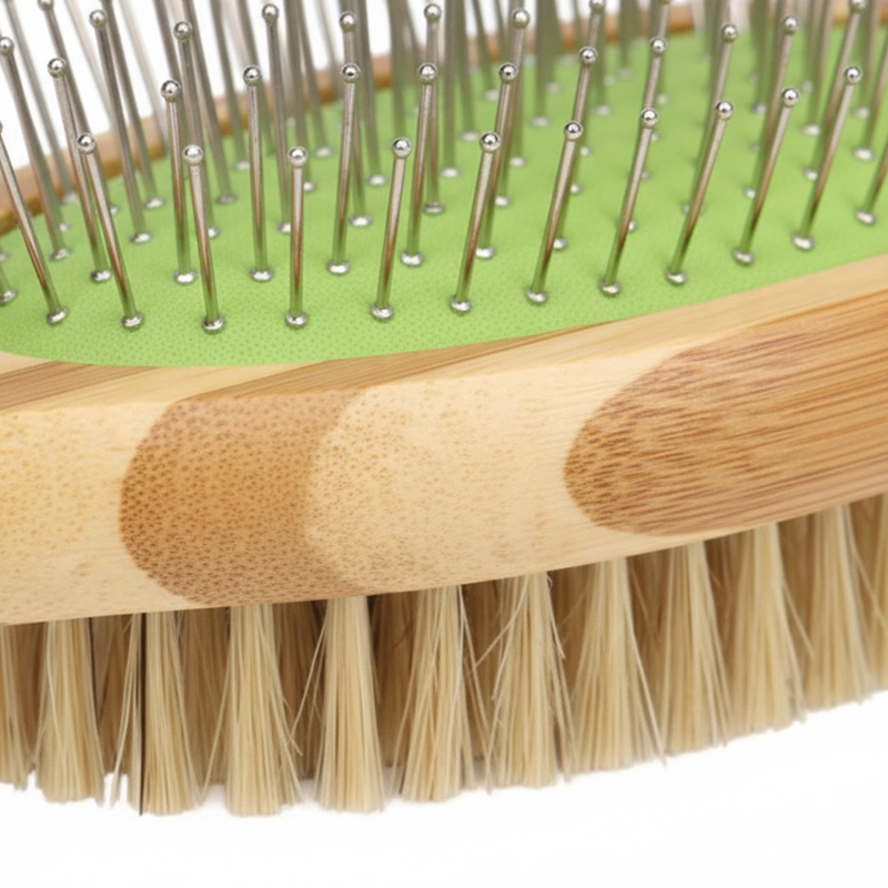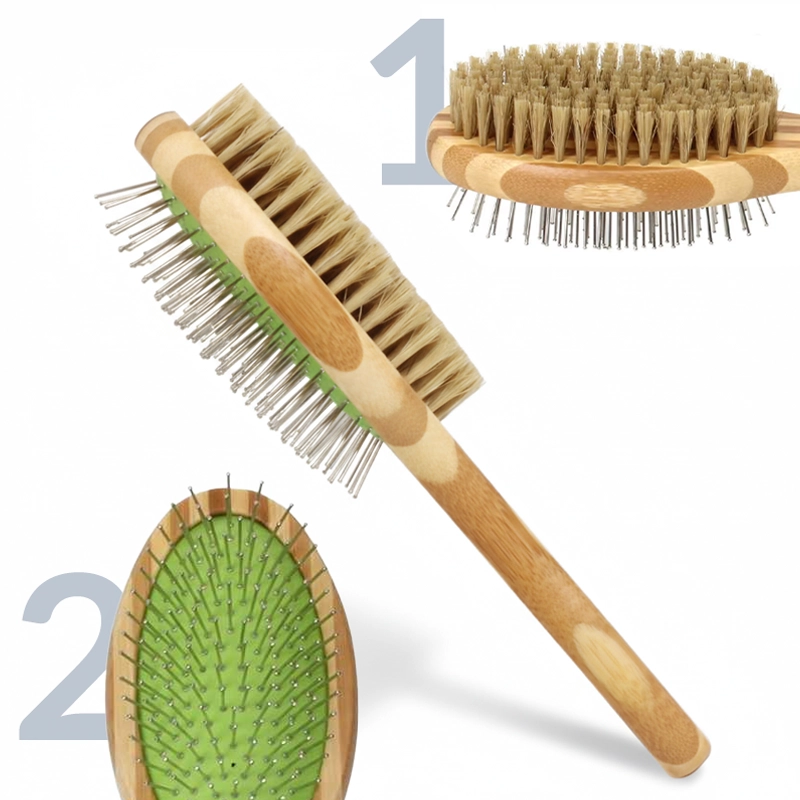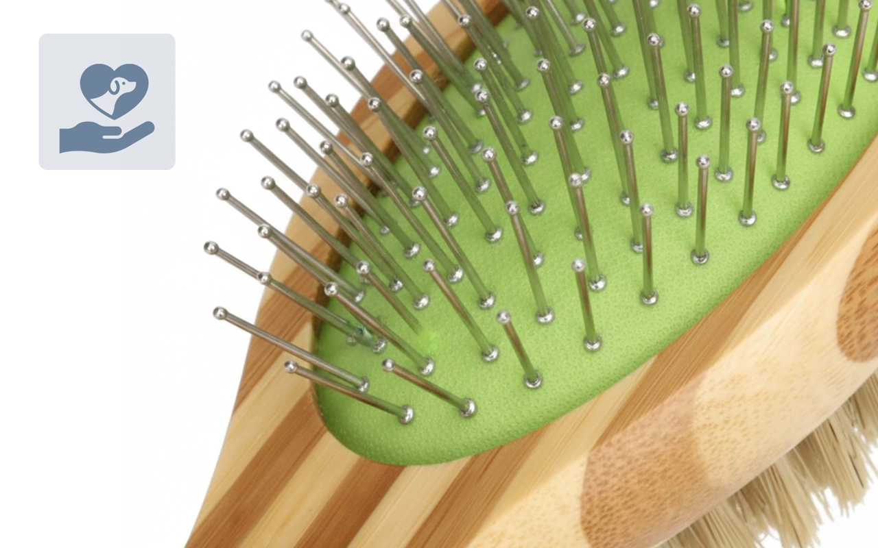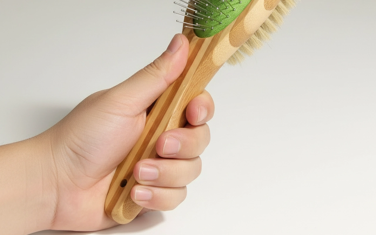Impugna la spazzola in modo sicuro, anche durante lunghe sessioni di toelettatura. Il manico in bambù ha una sensazione naturale e resta stabile nella mano.