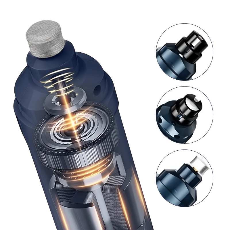 Il potente motore rifinisce rapidamente e senza intoppi anche gli artigli più resistenti. Tre fori si adattano a tutte le taglie, così ogni animale avrà una manicure perfetta.