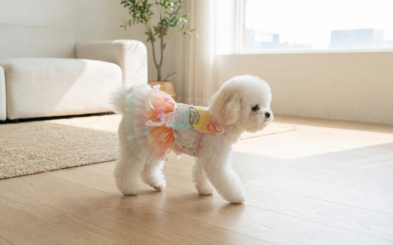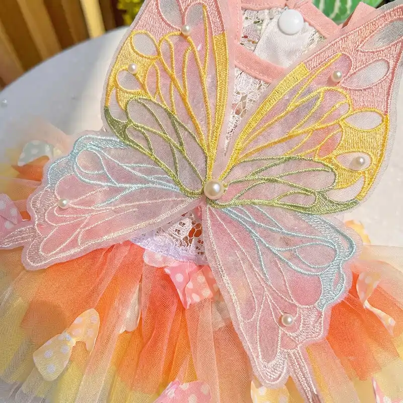 Ho usato il costumino per le foto di compleanno del mio cane. Niente graffi, niente strattoni, solo una cagnolina calma che posa come una regina delle fate per tutto il giorno.