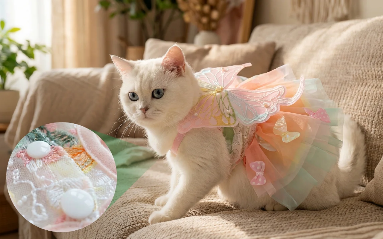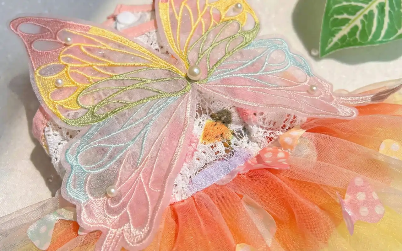 Trasforma all’istante il tuo animale in una visione da fiaba. Meravigliosi pizzi e ali di farfalla aggiungono un tocco di fantasia irresistibile.