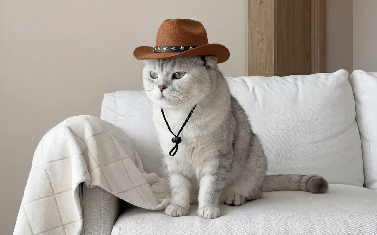 Avevo ordinato il cappello per il mio gatto per scherzo, ma è diventato un appuntamento quotidiano. Se ne sta sul divano con il cappello e sembra un piccolo sceriffo.