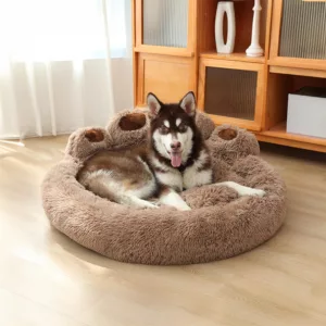 Grande letto rotondo anti-ansia per cani, nido calmante per animali domestici con bordi alti