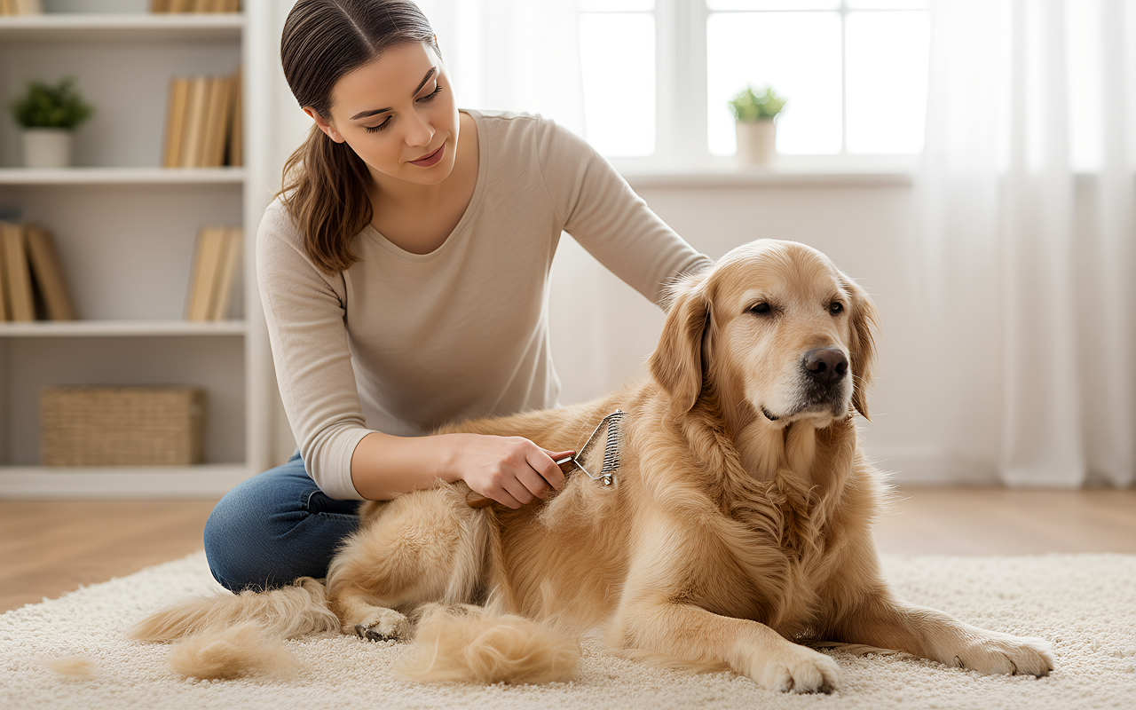 Questa spazzola è stata una salvezza per il mio golden retriever. Si mette davvero tranquilla quando la uso! Il pelo viene via velocemente, non tira, e il suo manto adesso è così lucido e liscio. La pulizia è super veloce e la toelettatura non sembra più una fatica.