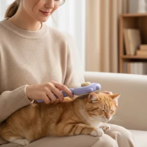 Questo strumento mantiene il pelo della mia gatta setoso. Prima non amava la toelettatura, ma ora sta ferma. Basta una pressione e tutto il pelo si stacca. Super comoda!