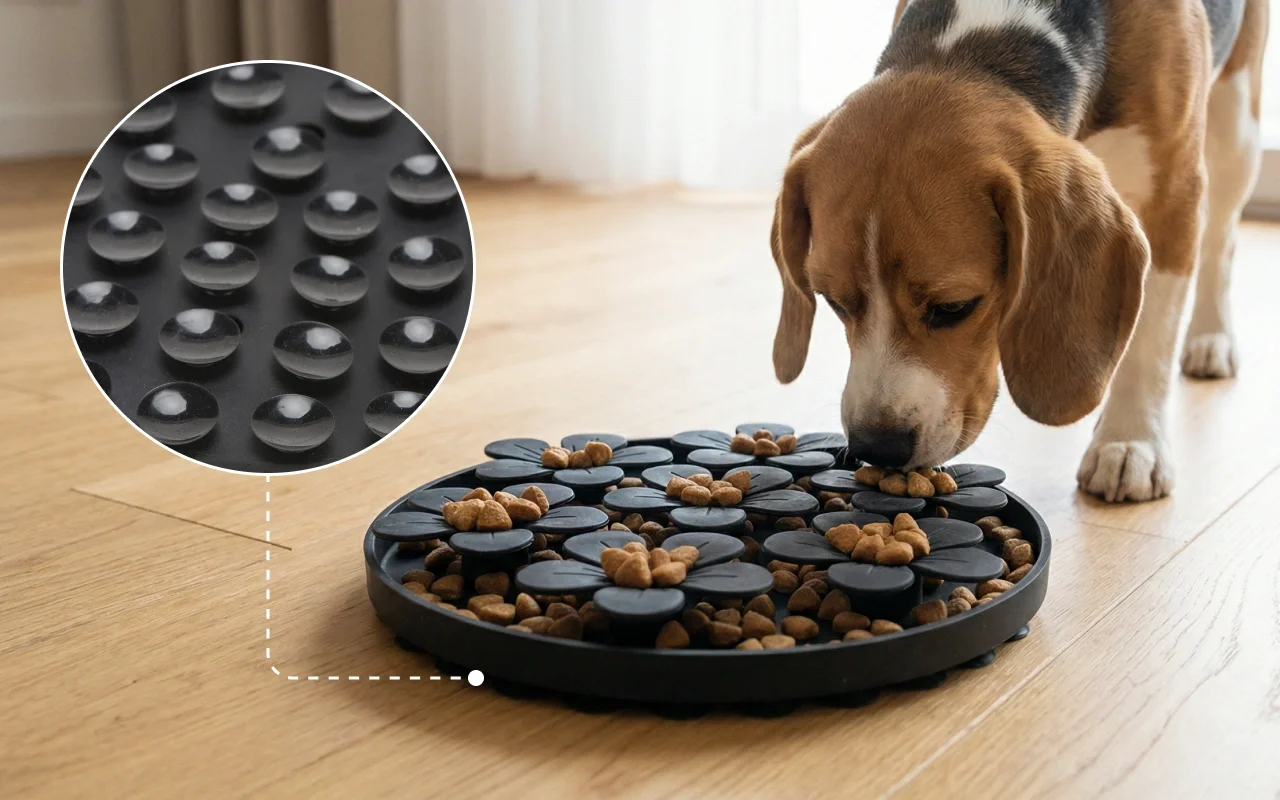 Il nostro cucciolo rovesciava la ciotola normale ad ogni pasto, ma questo tappetino si attacca come una colla! Ora passa più tempo a mangiucchiare, significa meno ingozzarsi e pancia meno irritata. Adoro quanto sia vivace e divertente.