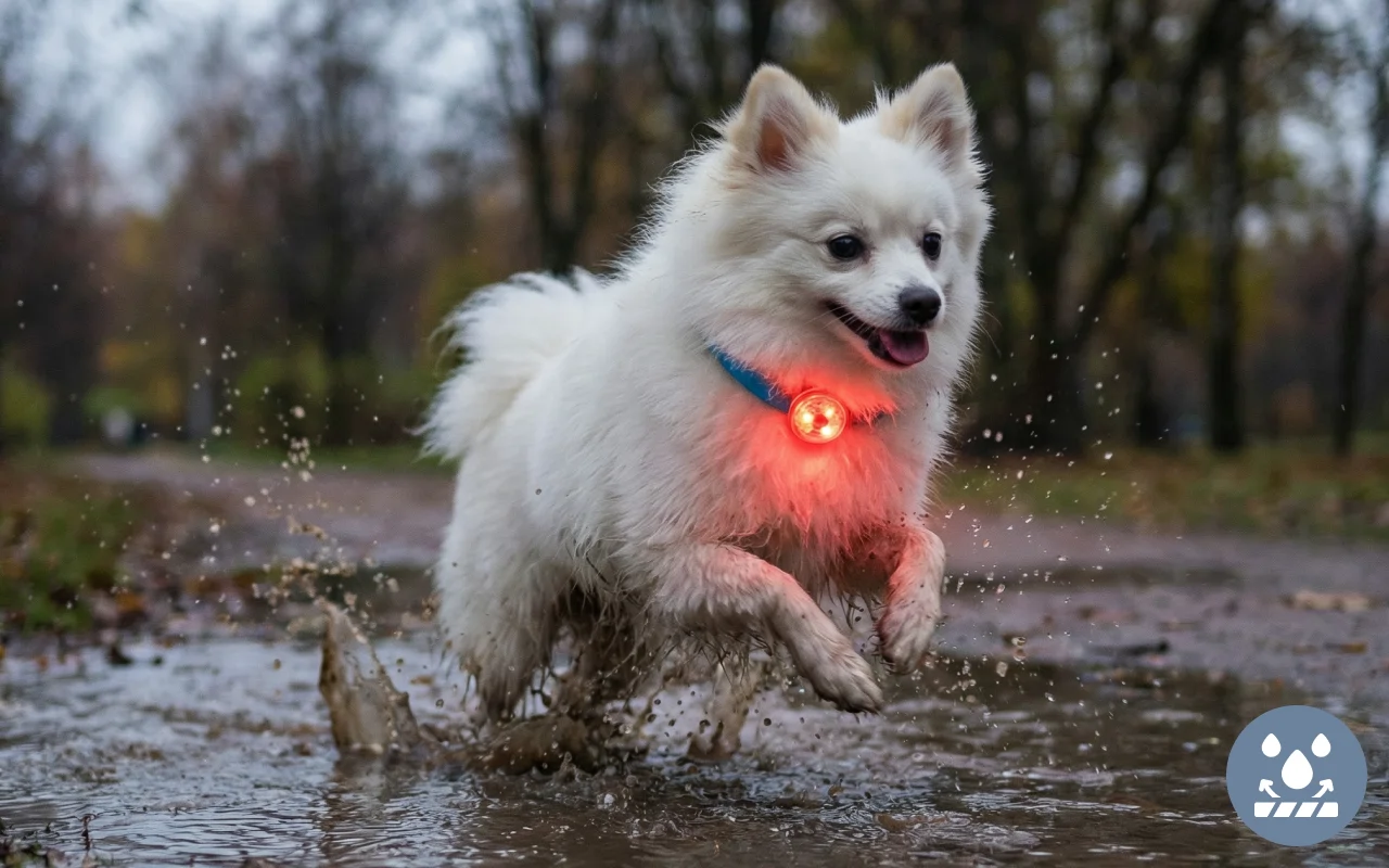 Il tag impermeabile funziona perfettamente, anche dopo forti piogge. Il mio cane ama le pozzanghere e la luce continua a brillare ogni volta.