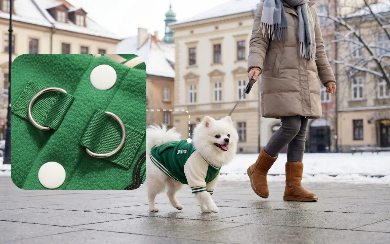 Aggancia il guinzaglio all’anello resistente per passeggiate sicure. Niente più complicazioni con le pettorine: più tempo all’aria aperta insieme.