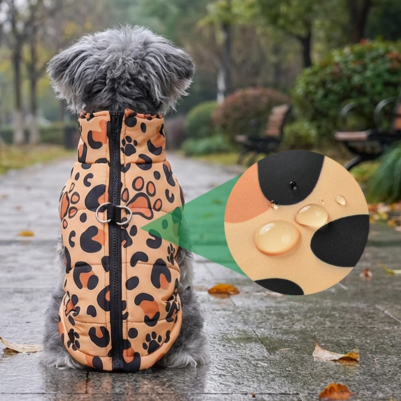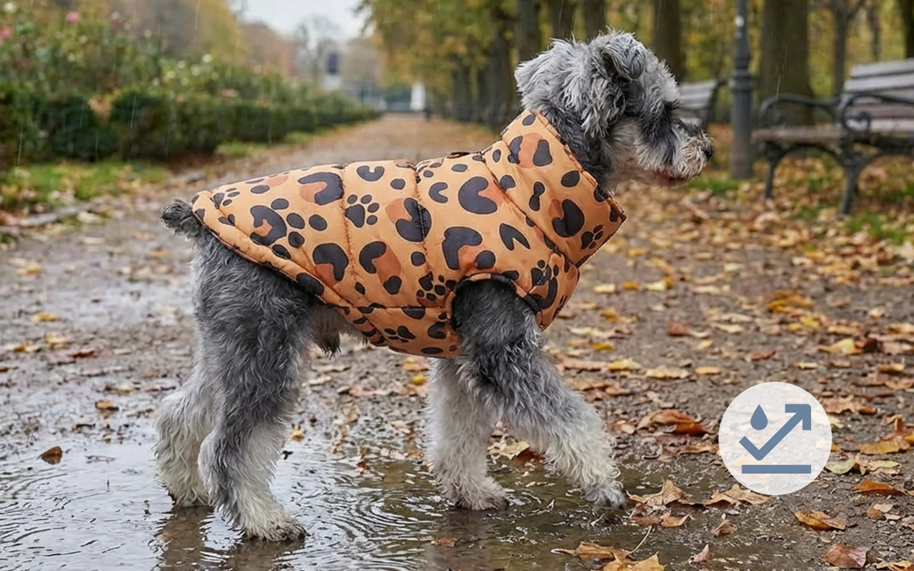 Gli schizzi scivolano via dalla superficie, mantenendo il pelo asciutto e caldo. Le passeggiate restano piacevoli anche quando pozzanghere o pioggia arrivano all’improvviso.
