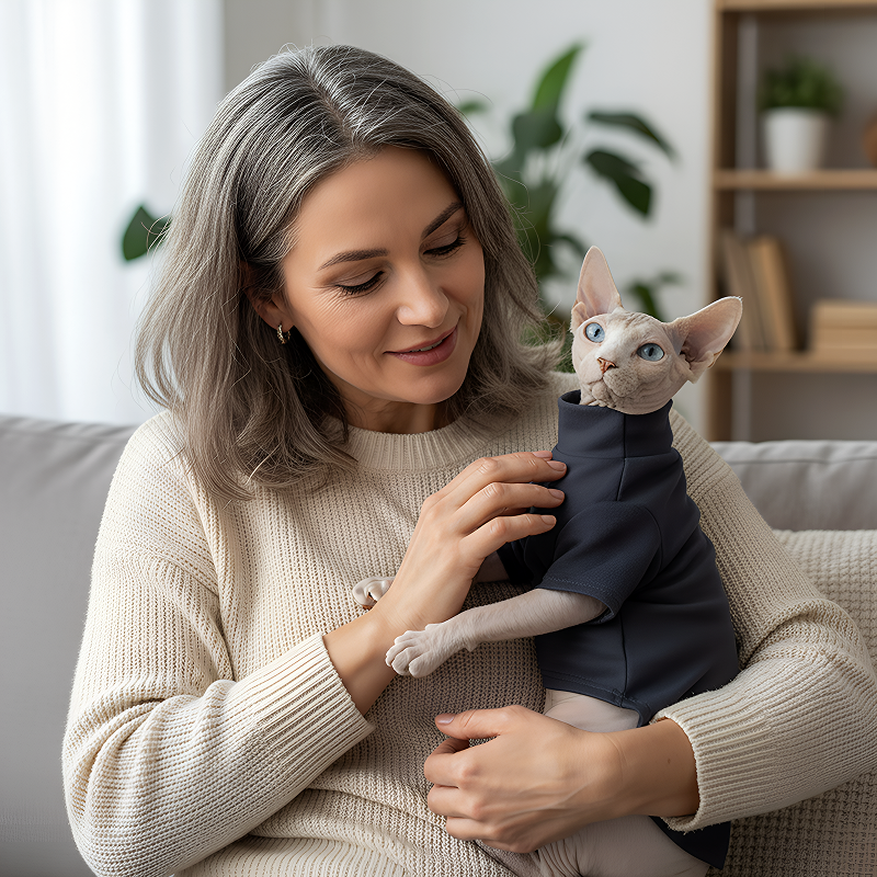 La mia gatta lo indossa quando fa freddo e resta senza fumo in casa. Il cotone delicato aiuta con la sua pelle sensibile.