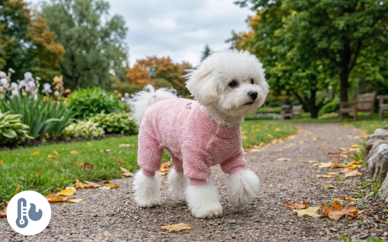 Tiene il mio cagnolino ben caldo durante le passeggiate mattutine.