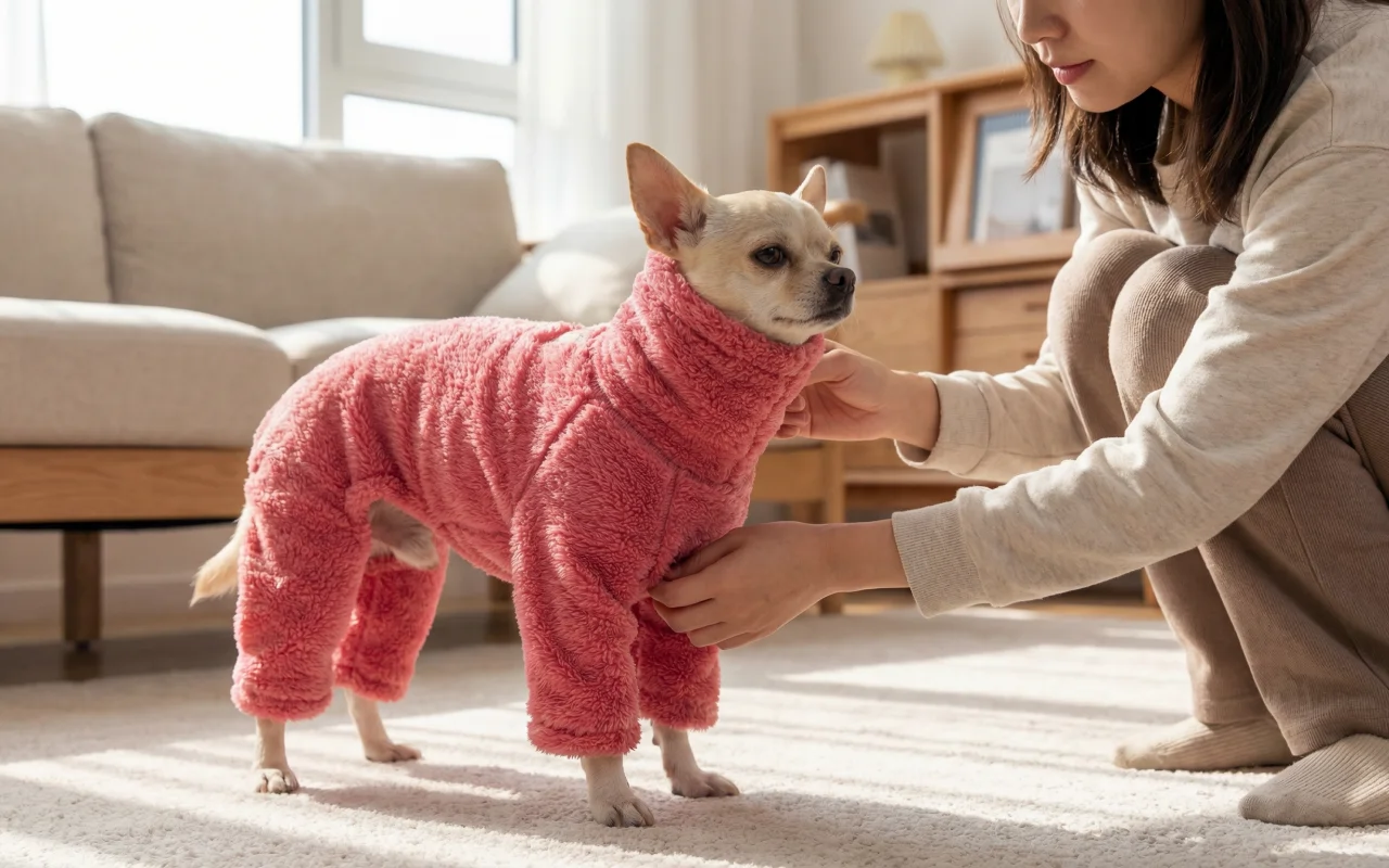 Tuta in pile calda per cani Pigiama morbido e carino per animali con collo alto