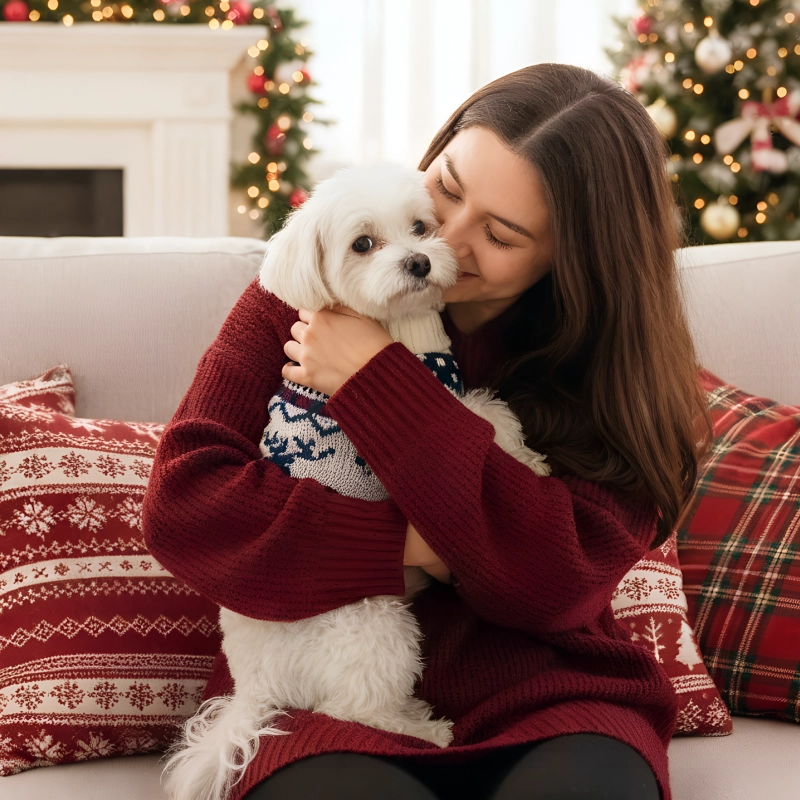 Il mio piccolo carlino si entusiasma ogni volta che gli metto questo maglione! È super comodo e la fantasia natalizia è bellissima nelle foto. La vestibilità è perfetta!